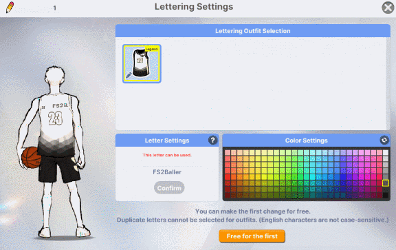 * Before using the lettering function, the basic settings are as follows: Text: FS2, Color: White, Stroke: Black * An error notice will pop up when clicking on the lettering function on unequippable outfits.