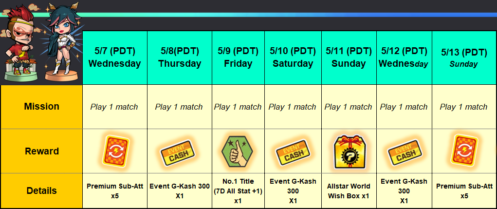 Event Period: 05/01/2025 ~ 05/06/2025 23:59 (PST)