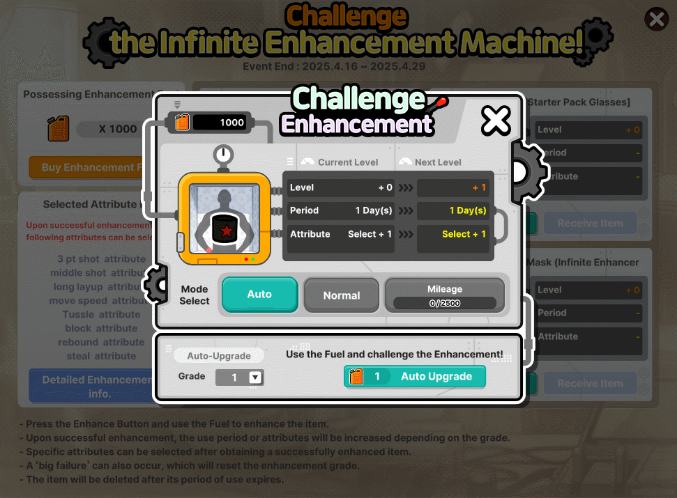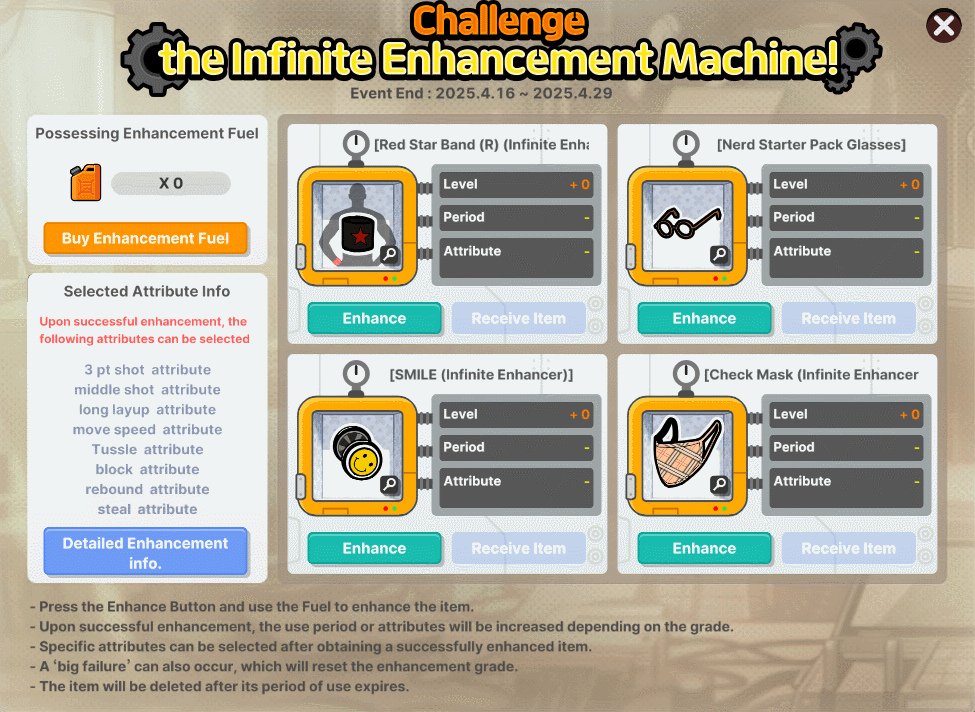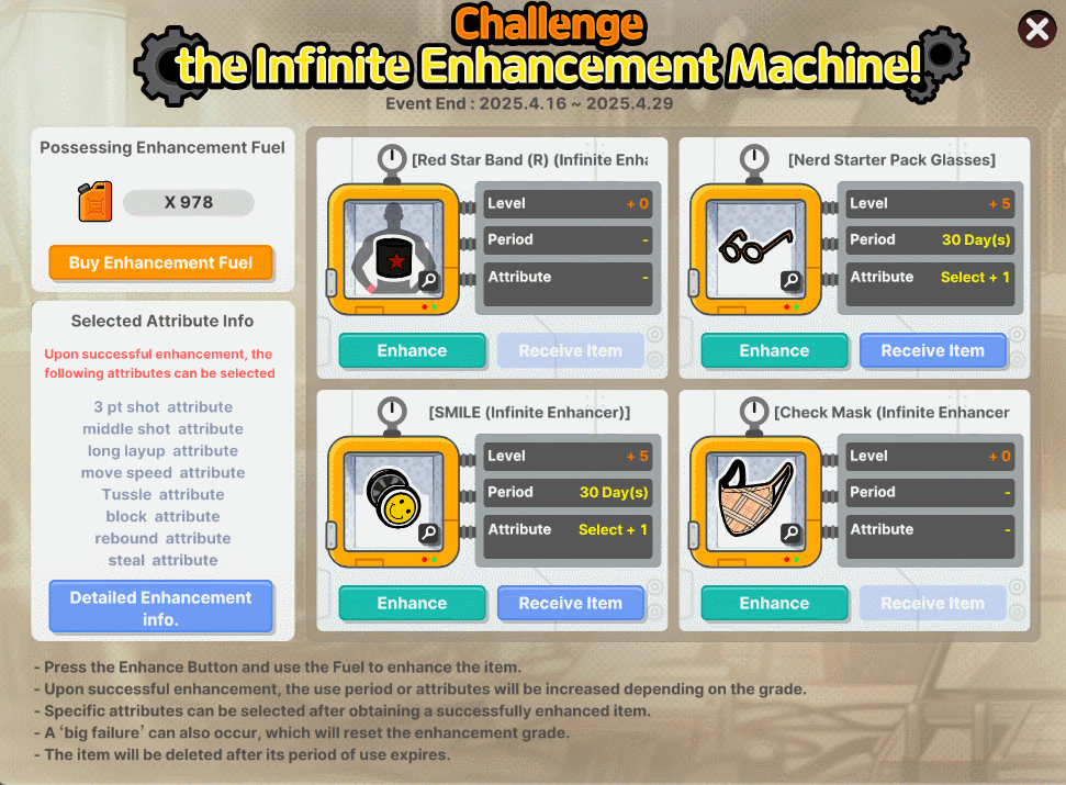 → Enhancement Fuel is required to enhance items. It can be purchased by selecting the "Buy Enhancement Fuel" button on the event page.
