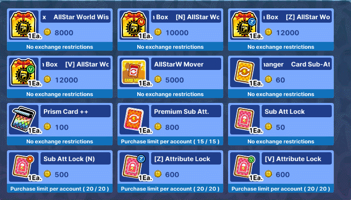 Please check the table below for the list of available attributes you can obtain using [color=aqua]Allstar Sub-Attribute Card[/color]: