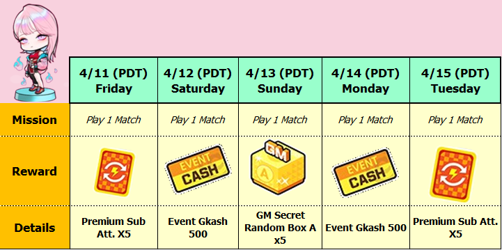 [td]Tuesday, April 15th 23:00 ~ Wednesday, April 16th 02:00 (PDT)[/td]