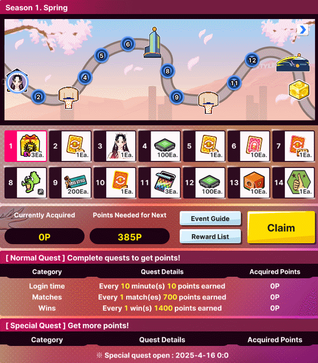 [td]2025/04/16 00:00 ~ 2025/05/06 23:59 (PDT)[/td]