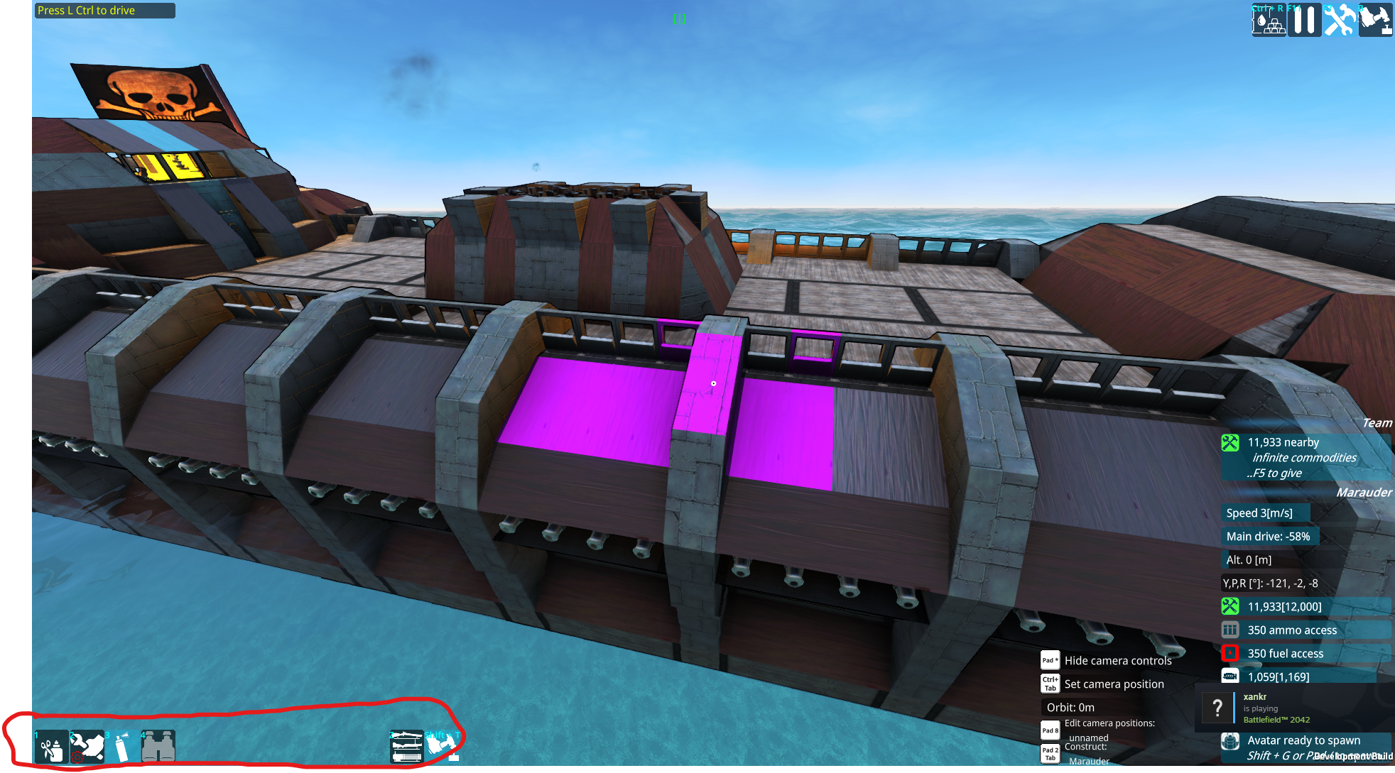 Construct camera, The default camera for a vehicle now has roll and pitch stabilisation enabled by default, with buttons on the UI to disable them or add yaw stabilisation.