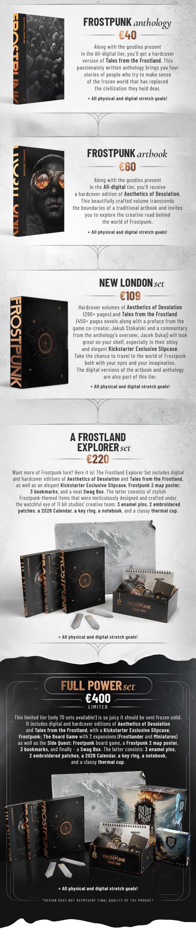 After a success of polish language version of the book, and a lot of discussions, we realized that publishing it through the Kickstarter platform will be the best way to share this experience further and perfect opportunity to add exclusive items! Frostpunk franchise is very close to our hearts, and we wanted to publish it independently, with full creative control and available for all, at the same time.