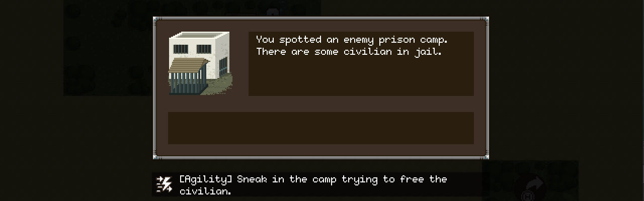 There will be some encounters where you will have to decide how to deal with them. Have you based your training on agility? Then better sneak into the enemy camp. Or are your men skilled in shooting? Then you can solve everything with brute force.