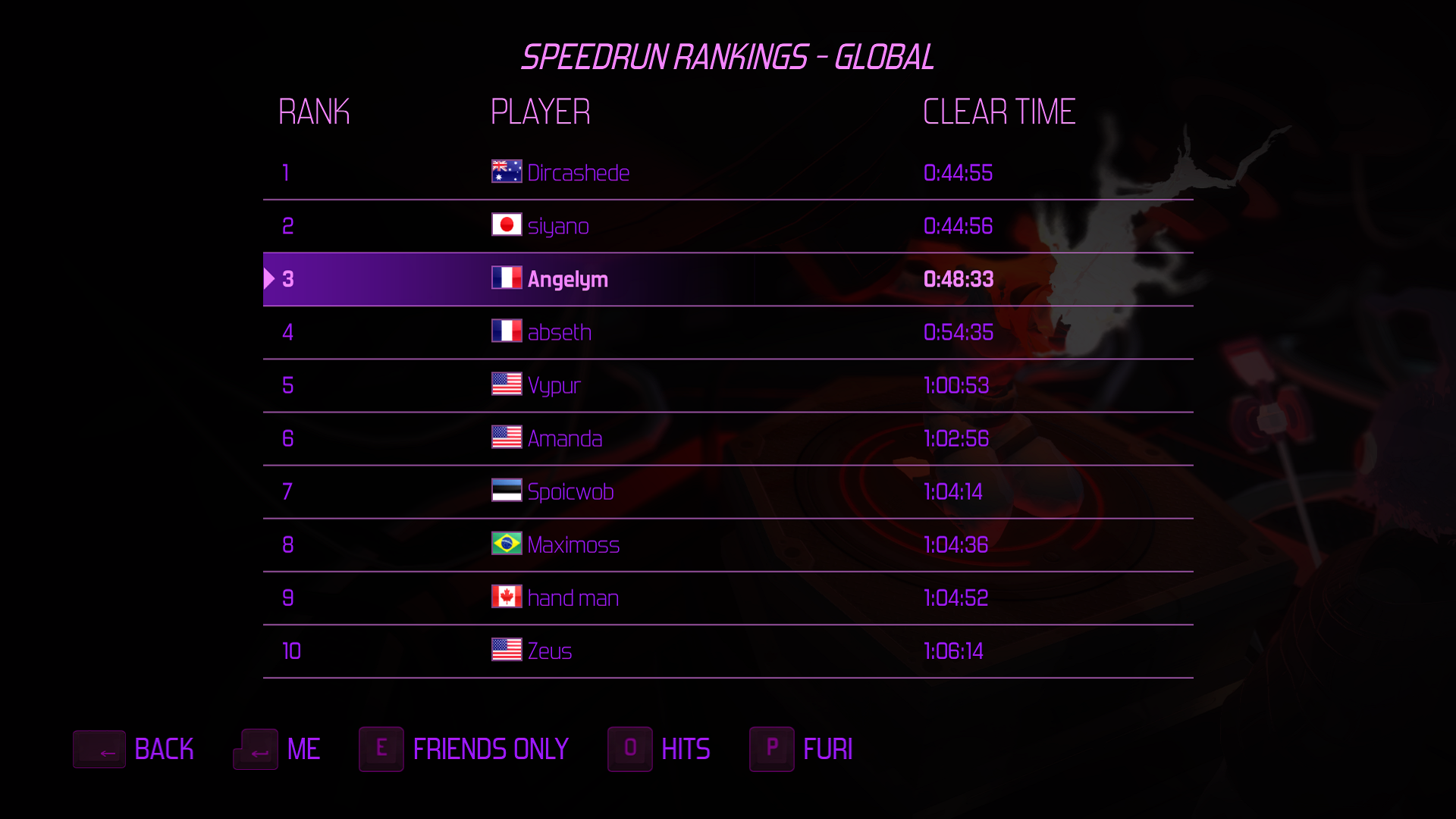 That’s it, the race for the best score at Speedrunning Furi in Furier difficulty is open!