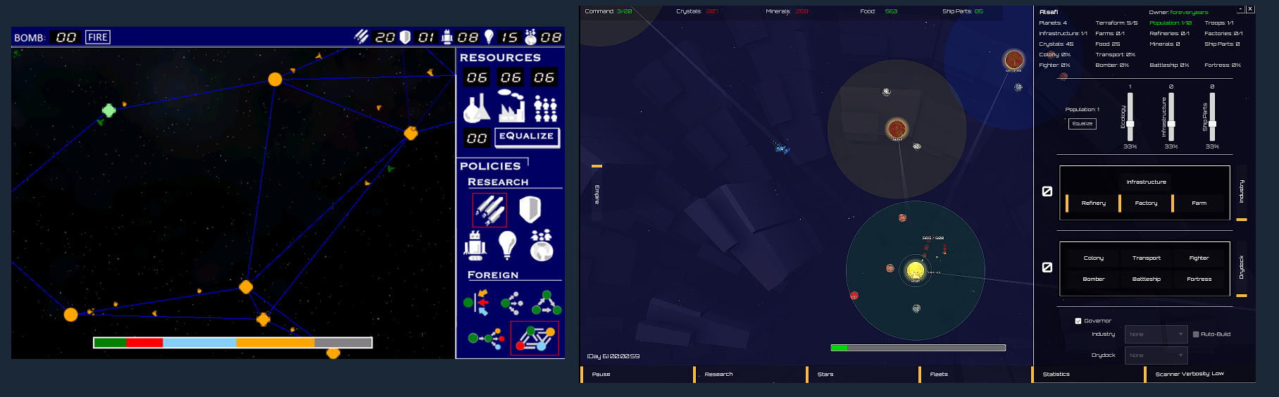 - And then because of all this (and many more), the A.I. had to be completely re-written. They had to be able to colonize new Stars, build industries, and ships. Then find, bomb, transport troops, and attack enemy Stars.