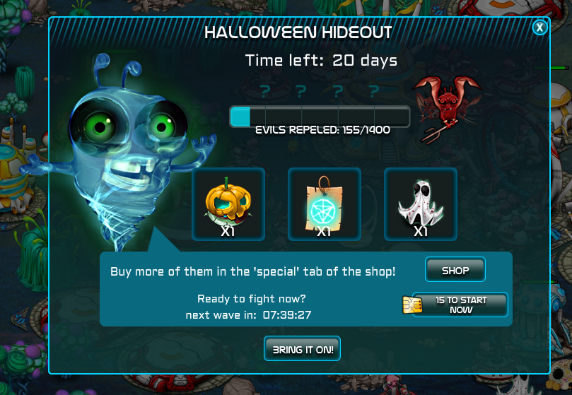 While Chubi was out scouting the universe he found a familiar comet headed this way... An icy comet that had appeared once before! That can only be a Halloween omen. Get ready and prepare to fight the zombies and skeletons once more!