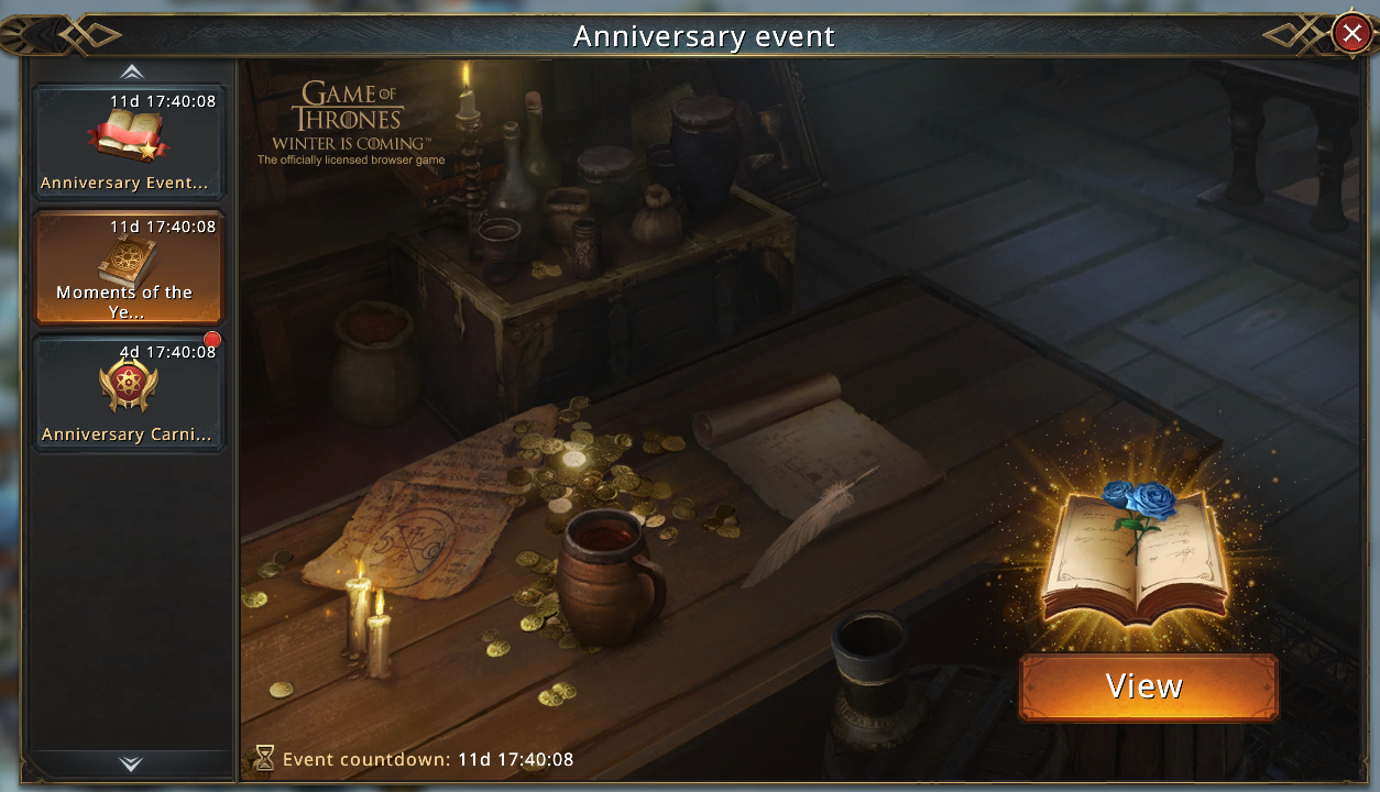 Click the Anniversary Icon on the game interface and enter from Moments of the Year then you will be redirected to a new page with a bunch of anniversary events!