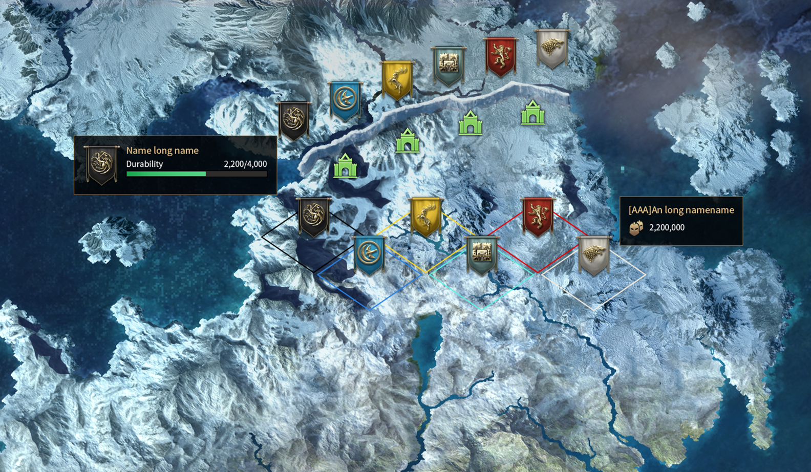To assist the defense, different buildings that bring buffs to players and attributes to the Wall will be introduced. Outposts as defensive buildings are located north to the wall, and players can send Rubble to an outpost to increase its durability and upgrade its level. All the special buildings, namely Maester's Tent, Stable, Training Field, Sacred Temple and Bonfire, are located between Alliances' starting zones and the Wall, with each building having their unique usage. Players can get upgrade materials from collecting resources and send them to different buildings to upgrade their defense and buffs. Take Maester's Tent as an example, players can send Rubble to a Maester's Tent to upgrade its level. Upgrading to a new level will add 1 attempt to the "Restoration" skill for all players. Restoration: Revives a certain amount of troops defeated in battle. *Names of the buildings will be final determined in game.