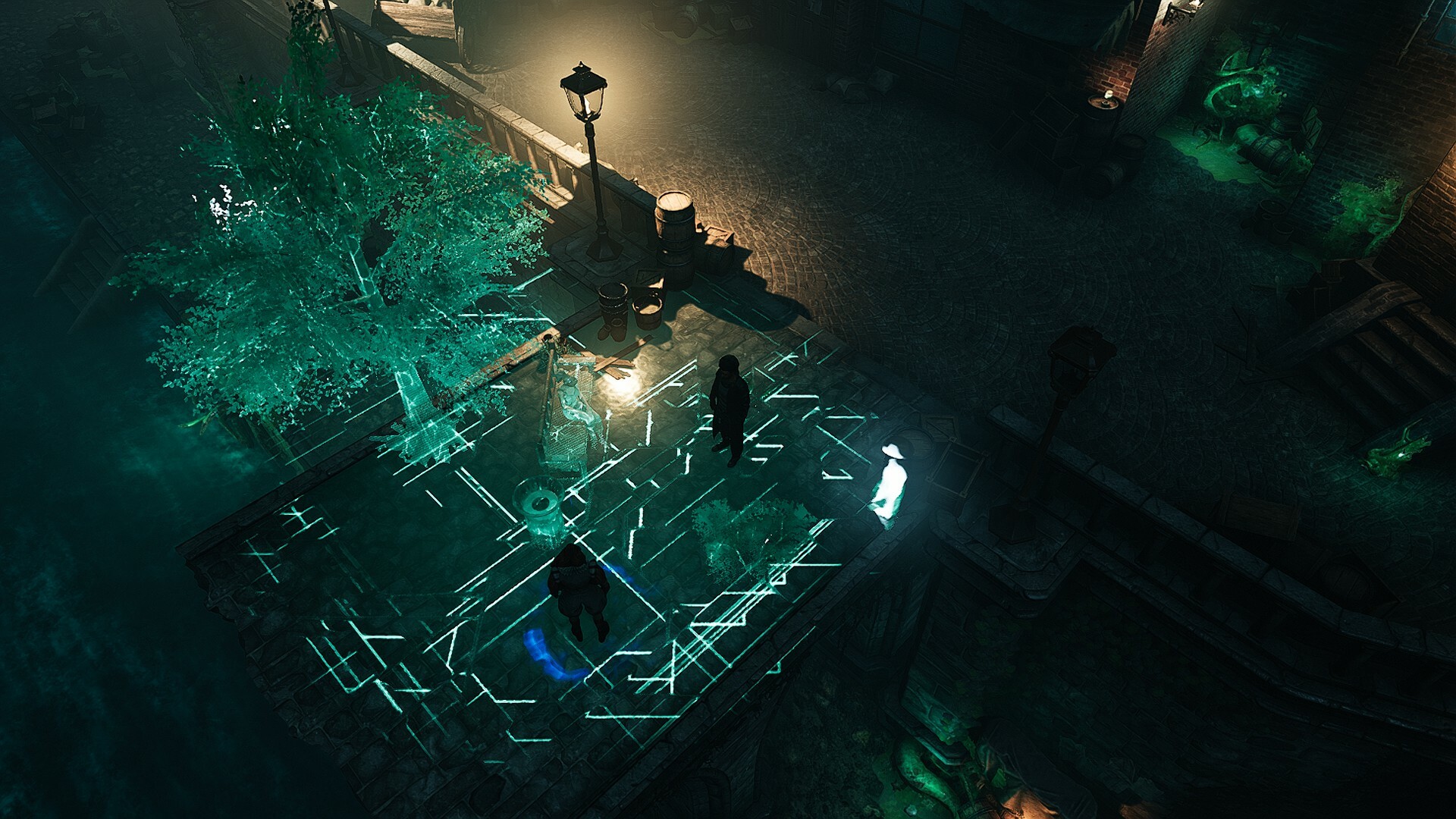 Another challenge that got our creative juices flowing was incorporating worlds from two different games into one case. Whereas Gamedec flaunts its hi-tech environments, in Seven: The Days Long Gone, technology is rare and perceived as mystical. This gave us a wonderful opportunity to place the known and liked characters from Seven into a setting they donât understand and confront them with the technology they distrust. This composition of previously existing elements immediately opened up new possibilities. Youâll see the characters adapting astutely, attempting to ignore the transition with varying results, and even breaking under the realization theyâre NPCs. Weâve also incorporated Sevenâs technology tropes. Mysterious daemons featured prominently in Seven came to life as the latest invention in Gamedecâs world and became the cornerstone of our plotline. Fear and acceptance of AIs, typical for each game respectively, fuelled the case's narrative. Weâve left you the final judgment.
