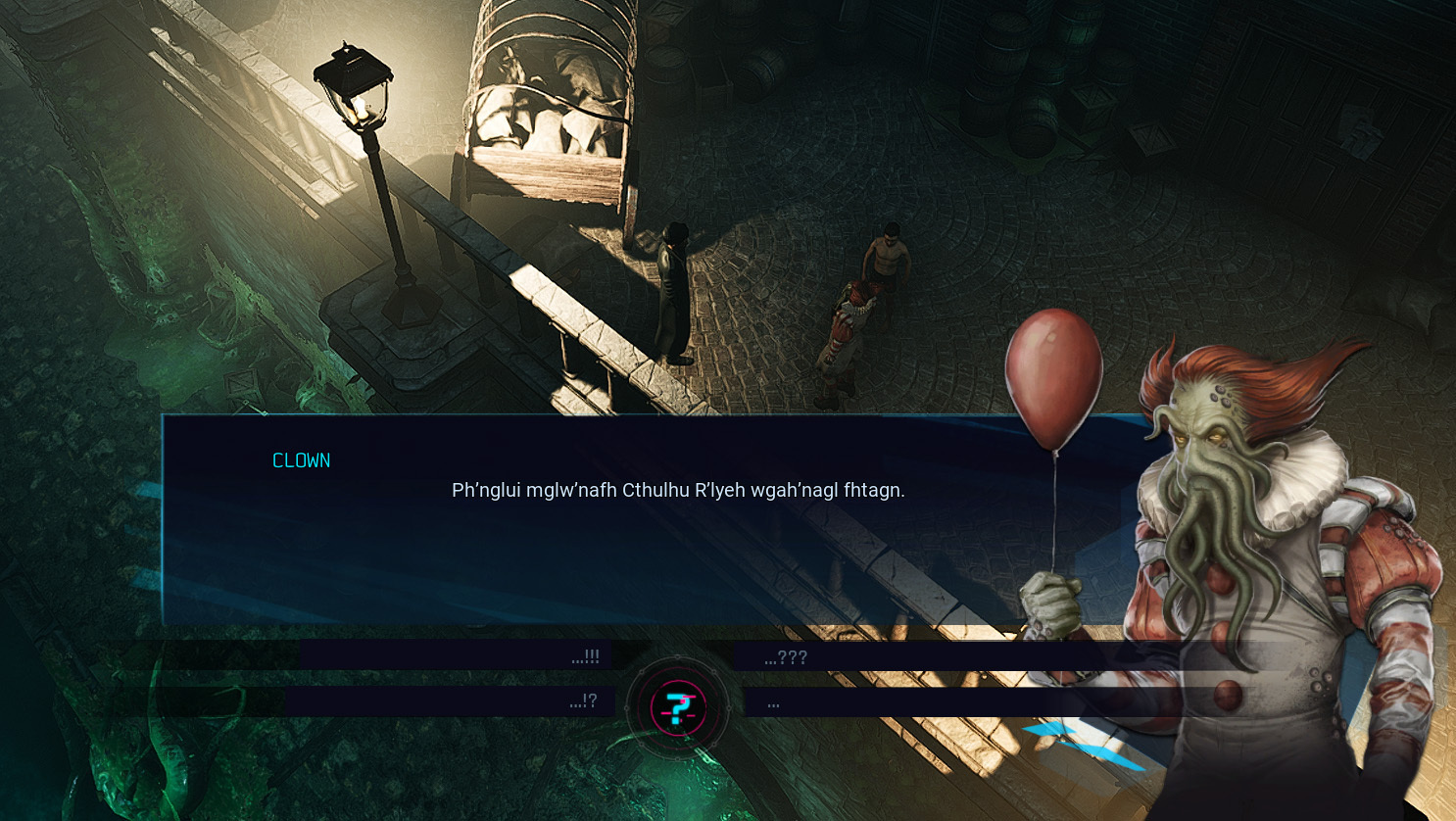 Speaking of virtualium, the gritty world of Twisted & Perverted seemed to fit perfectly with a Cthulhian-like story of a clown and a virus. It is there where you may find them. It is also the place where you first meet some memorable characters from Gamedec main story â like Ken or Trepanator â so it would be a shame not to use the opportunity to have those characters involved (and they very much are involved). They make the story more believable â as if it was always supposed to be there. If it wasnât for Twisted & Perverted with its already established characters, I believe the story would have felt disconnected and out of place.