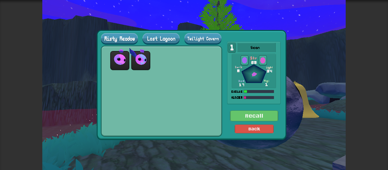 - The mooj naming panel will now always have the correct rotation when picking newly hatched mooj up - Mooj eggs now have a more fitting icon - Evolution particles will no longer render over item sprites - Fixed a bug where recalling a sleeping mooj would cause the sleeping particles to remain on while they’re awake - Fixed some icons in dialogue text that weren’t aligned with the text properly - Fixed a bug where leaving the meadow during the campfire event would prevent enemies from spawning in other gardens - Fixed some animations that are unstable over long periods of time (naming panel text / mooj), (main menu title animations)