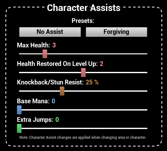 - Assist Mode now lets you remove your ability to jump. (Suggested by Wunarg.)
