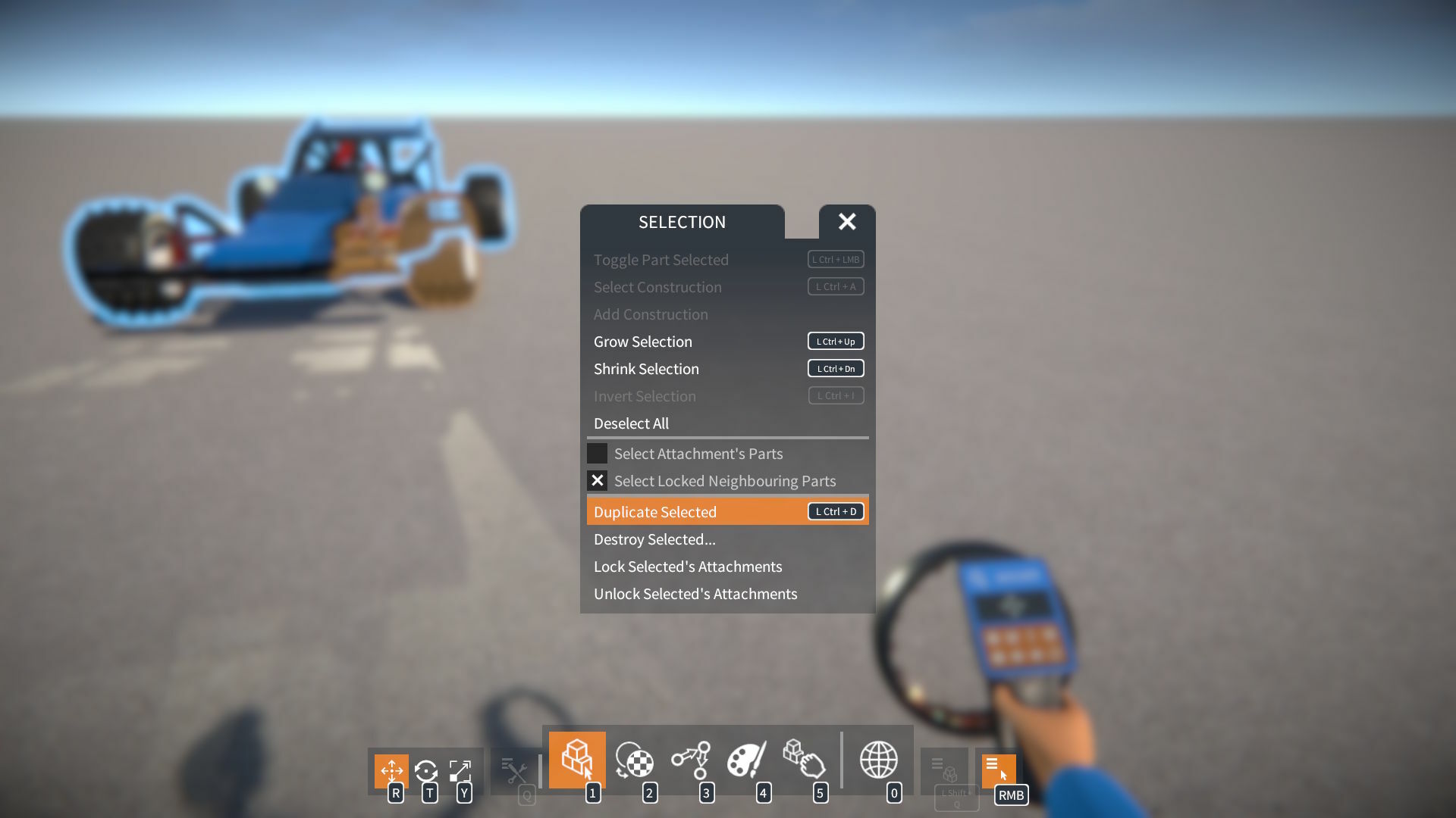 Implemented part selection duplication. To duplicate the currently selected parts, click Duplicate Selected in the SELECTION menu, or press Left Ctrl + D.