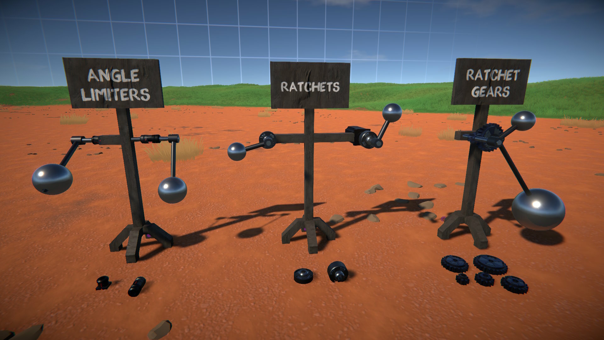 These also connect to an axle via a rotary bearing, and allow for rotation in only one direction. You can configure the number of ratchet locking "steps", set the locking direction, and optionally bind a key to temporarily release the ratchet lock.
