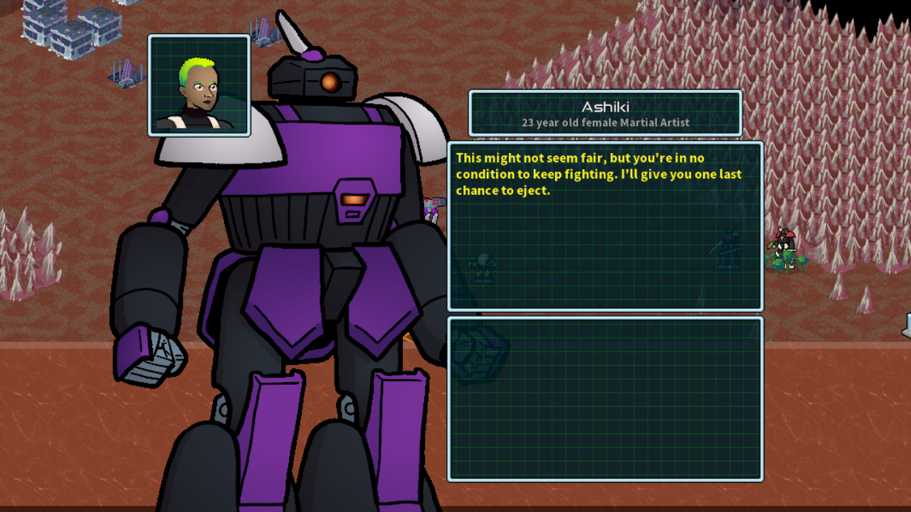 Happy Techno Thursday! Version 0.941 of GearHead Caramel has just been released. I have added a feature from previous GearHead games: enemy pilots will eject when their mecha becomes too damaged... or if they're intimidated by your lance. There are also a lot of bug fixes and stability improvements. Many thanks to everyone who reported the issues and helped me to track them down!