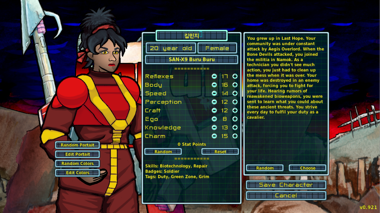 Speaking of the game manual, it's been updated with info about the new combat interface (introduced over the last few releases) and now has a complete section on character creation. Do you wonder what each of the stats does? Want to know what the skills are used for? Wonder no more! All questions are answered in the manual. And if you have any more questions, please let me know so I can include the answers in the next release.