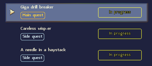 The quests are now more obviously categorized into main quests (i.e. boss fights) and side quests