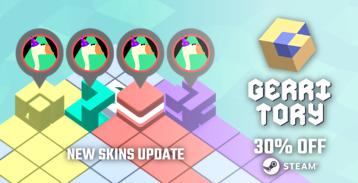 Hello Everyone! Gerritory is 30% off on 2020 Steam Winter Sale! With a free content update adding 4 new cube skins in the game.