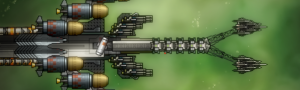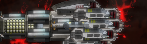 This titan-class vessel arrives as our second player ship of the week. The Laevetienn's massive size is matched by its cost at 479,428 Trillion dollars. The Laevetienn's purpose is tearing apart other heavy vessels in frontal assaults. Two multiphasic ion engine propel it, and a particle beam array arms it. Supporting weapons include a set of four twin naval cannon turrets for longer range work, and boosted missile arrays for fast moving targets. The durability of the frontal "blade" portion is staggering, allowing it to get in close and deploy its most powerful weaponry.