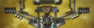 We found this vessel in an ammonia lake. Its external surfaces resist corrosion, and approximately half its functions are completely autonomous. It seems to be good at chewing up objects with its bolt guns.