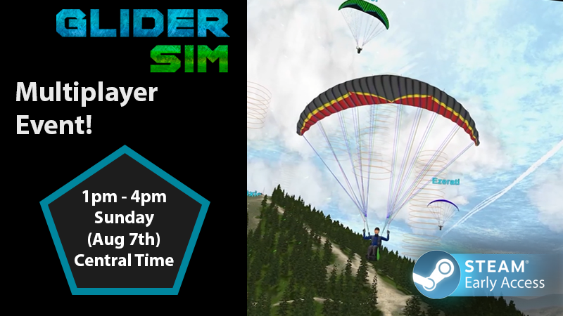 Some fun things to try in multiplayer are close proximity speed flying, paramotor flying, soaring thermals together, and ridge surfing! Use the radio voice chat to communicate in a session and organize your flight! Speed flying down steep terrain with a friend is my personal favorites and something I wish to make even better by bringing new maps to the game with steeper terrain. Yes, new maps are coming soon!