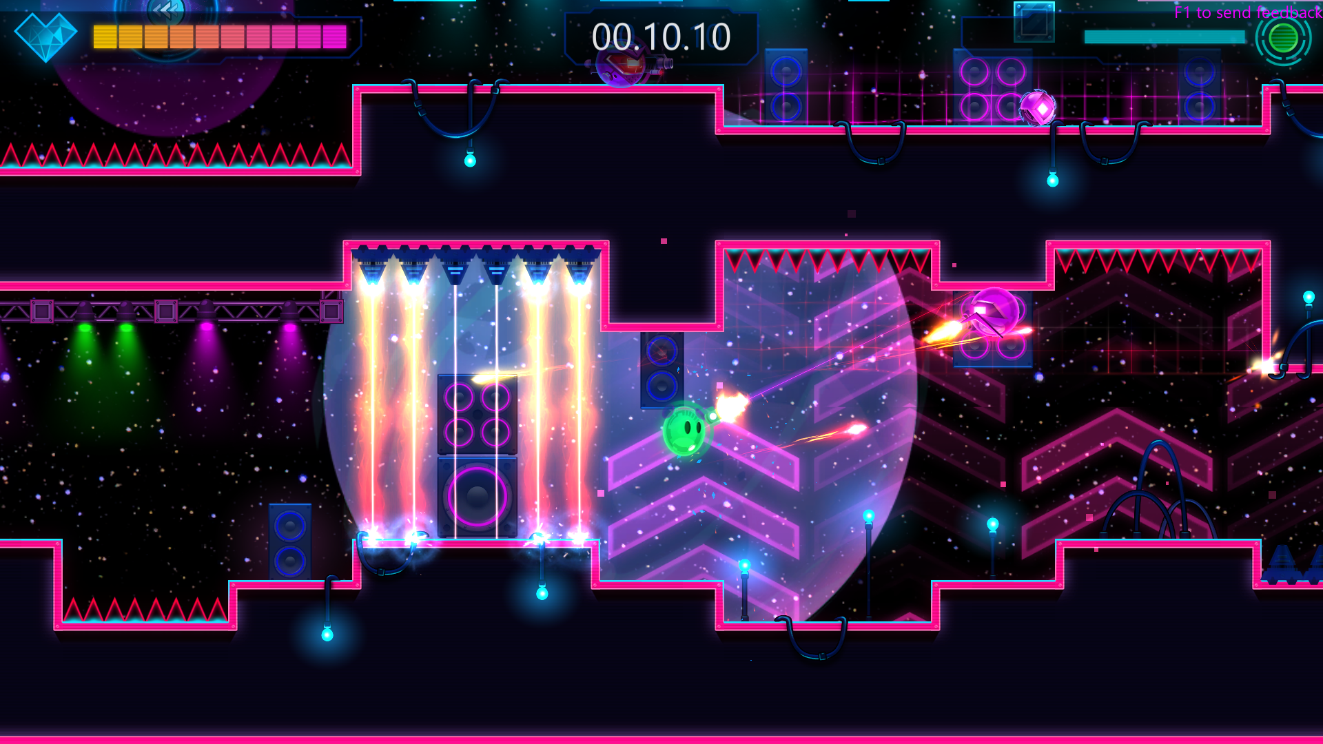 Creating World 3 – Space Rave: We are in the middle of creating levels for World 3 which is themed after a Space Rave. Yup, giant speakers, hanging lights, and festival drops! World 3 is all about gravity manipulation, so get ready to be upside down and sideways as you tackle new enemies and hazards! World 3 will also use the glitch powers from the first two worlds, so players will have to think fast as you float through zero g and time switching tiles all while flipping upside down and around. It’s been exciting to make these levels and we are stoked to get them into your hands. World 3 really ramps up the difficulty, so be prepared!
