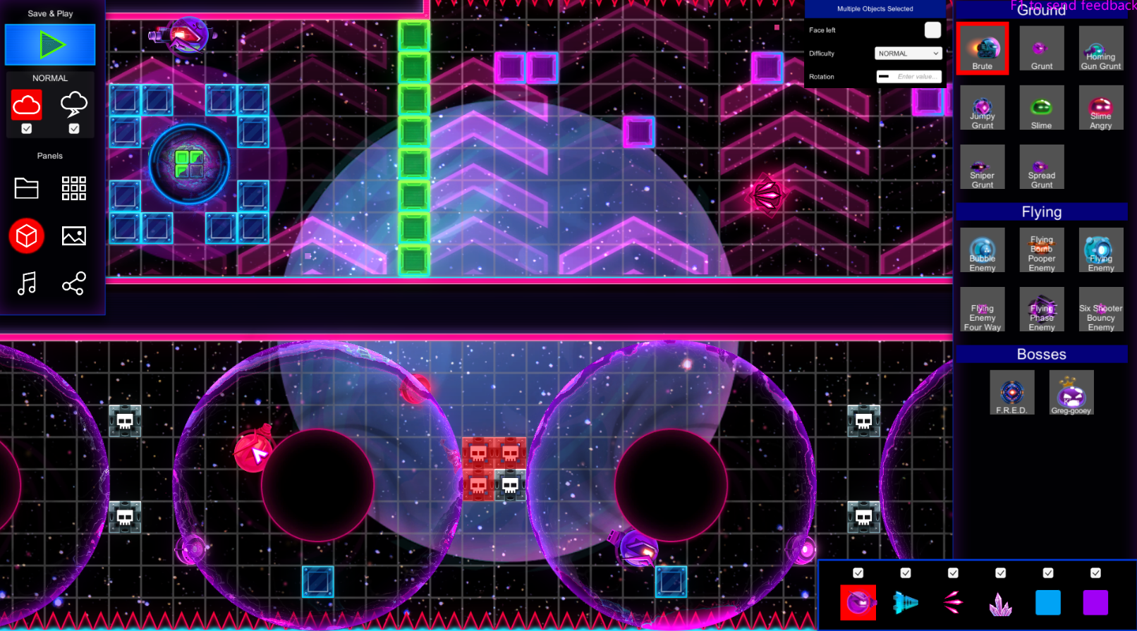 This build mainly focuses on the level editor. We completely revamped the UI! We're trying to make it even easier to build levels. We also added some additional functionality.