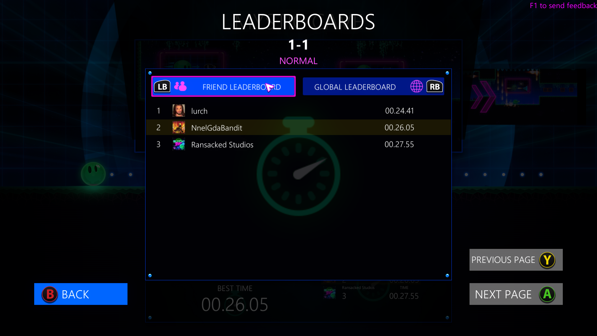 You can now compare your performance on each level globally and with friends on the level select screen. There is a preview and a full panel that can page all scores.