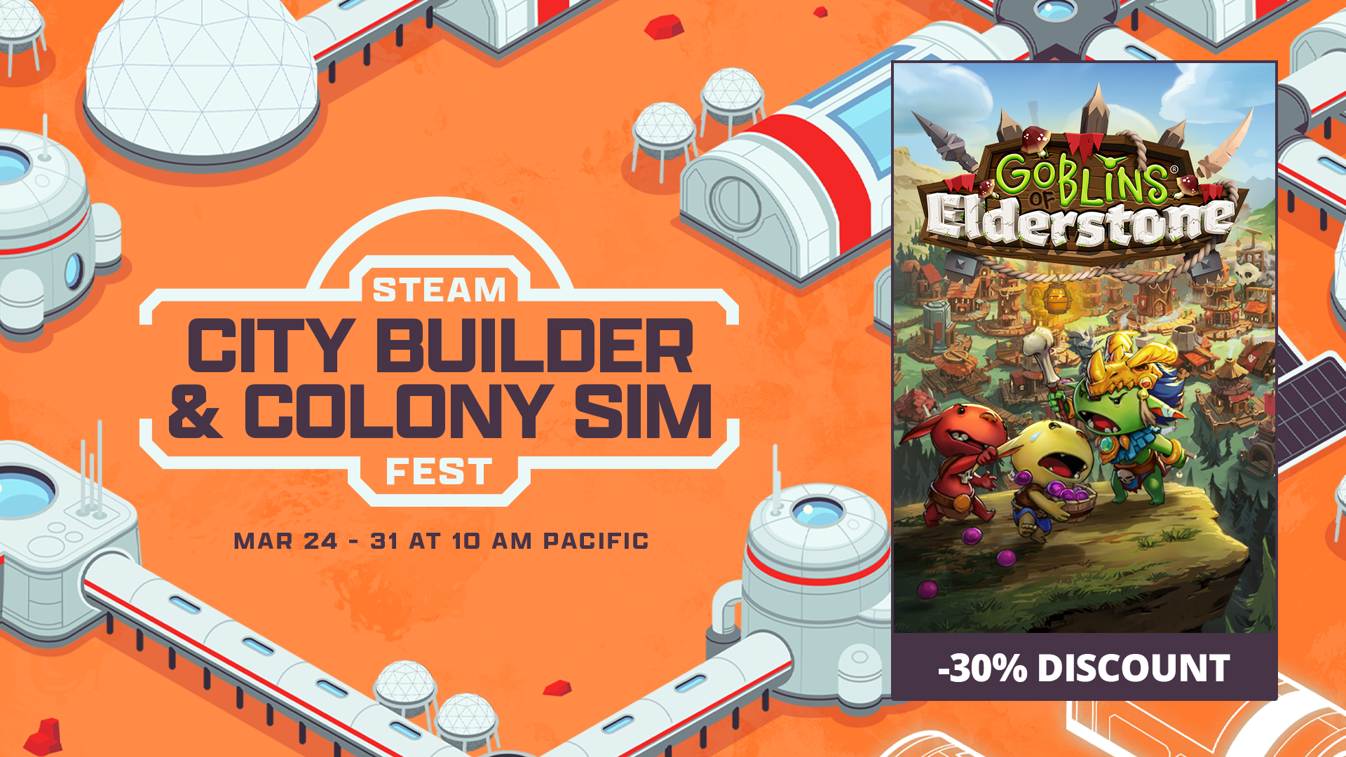 We're back with another fantastic discount just for you! As part of the Steam City Builder & Colony Sim Fest, we're excited to offer 30% off Goblins of Elderstone!