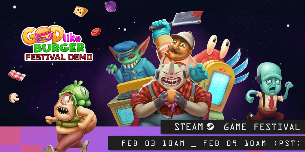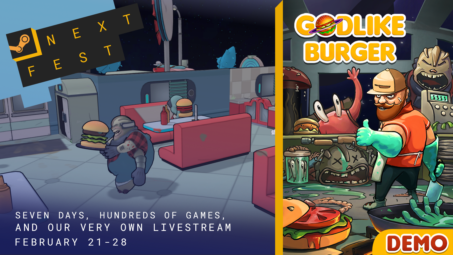 Perfectly timed for this Steam Game Festival we have not just announced that we are publishing Godlike Burger, but the great minds behind the the game have tinkered a first playable Demo, for you to test as well!