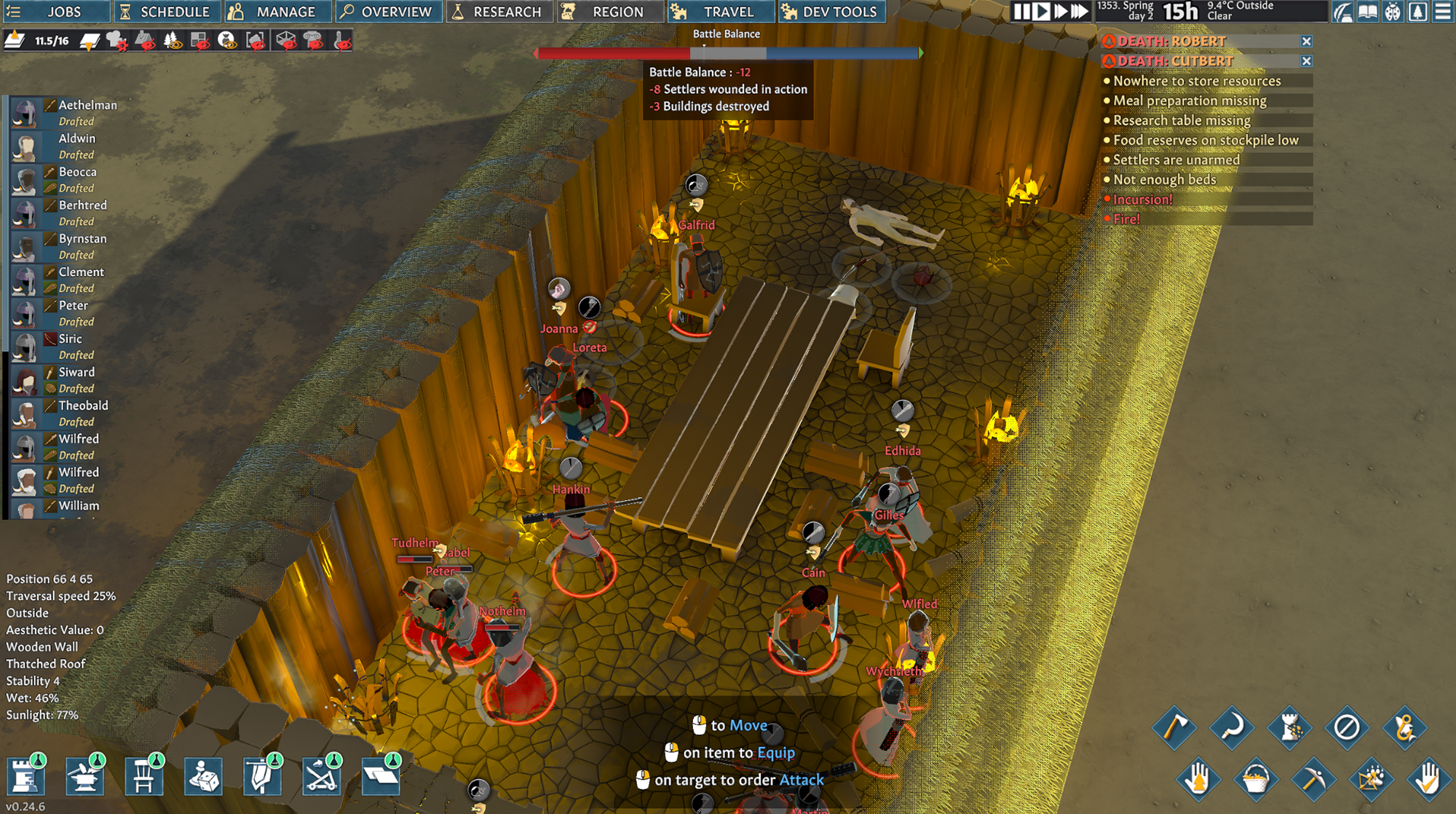 - We plan to add different thresholds to the scale where there would be different consequences depending on how severe the defeat was. Sometimes you may lose resources, but in a massive defeat unconscious settlers might be taken as prisoners by the enemy.