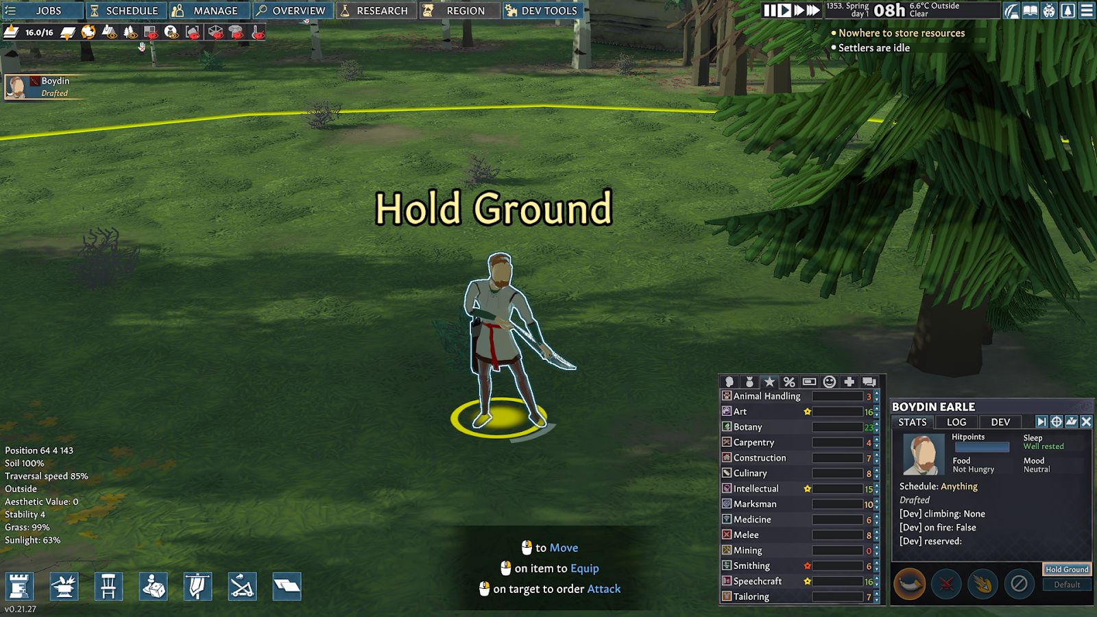 Hold Ground: Settlers will ignore everything around them and engage in combat only when directly attacked or within range.