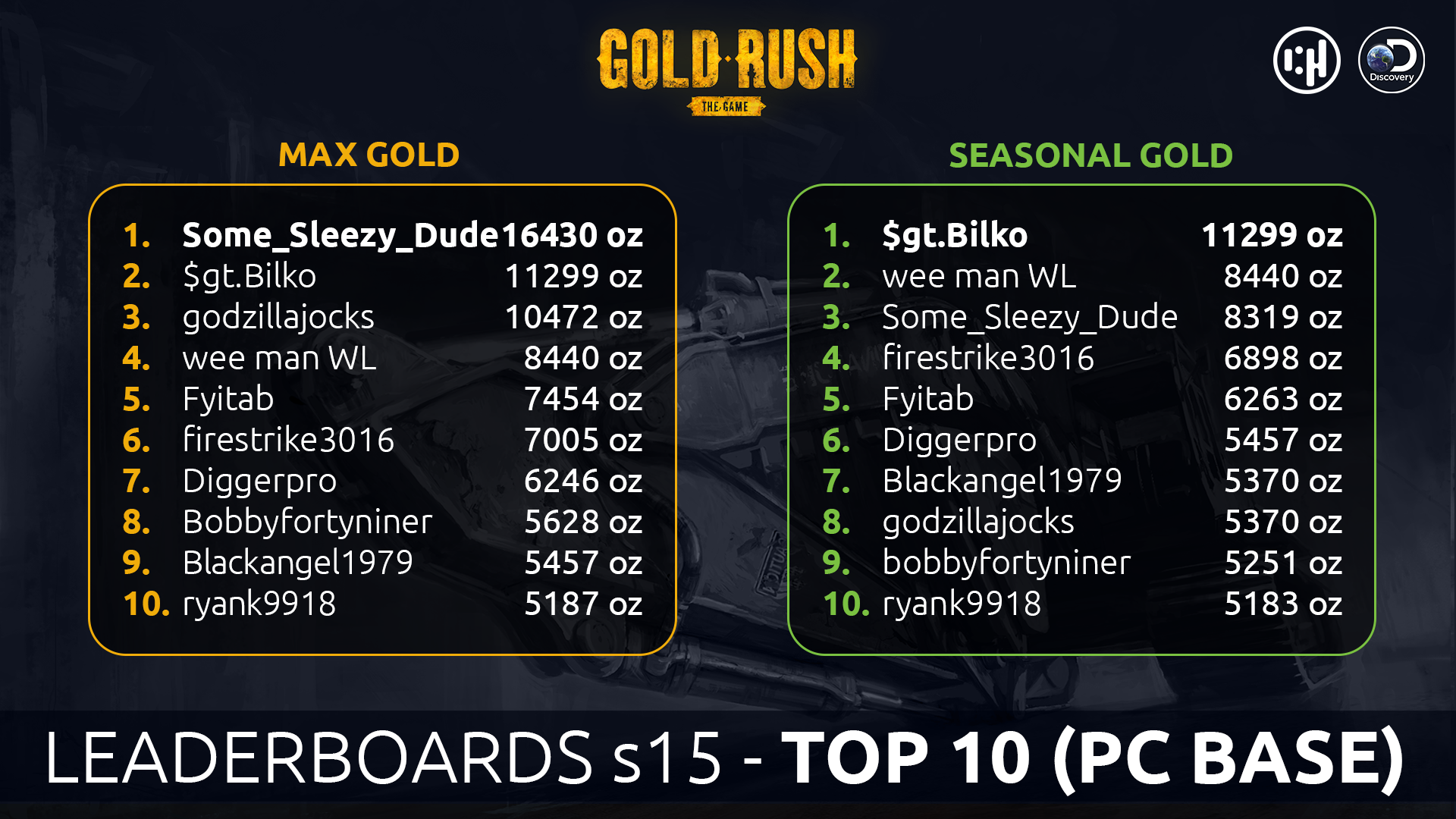Leaderboards Season 15 started (for this season only: changed starting map - Nighthawk now costs $0 when rented, digging at night [6 pm to 6 am] gives 40% bonus gold)