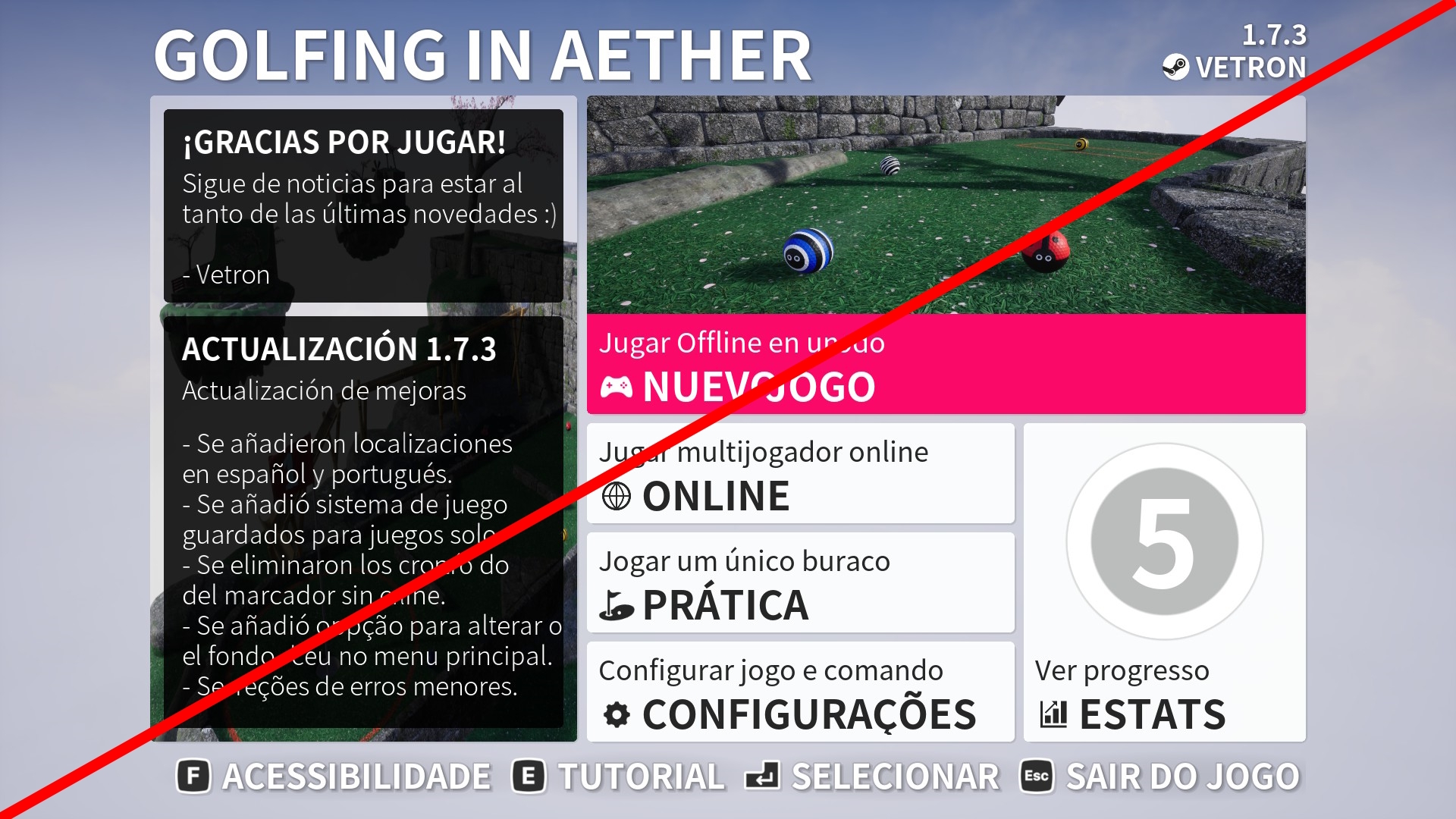 A new achievement "Breakfast Ball" has also been added. This achievement can be obtained during practice mode, with the requirements of "undo your first shot and then finish the hole with par or better".