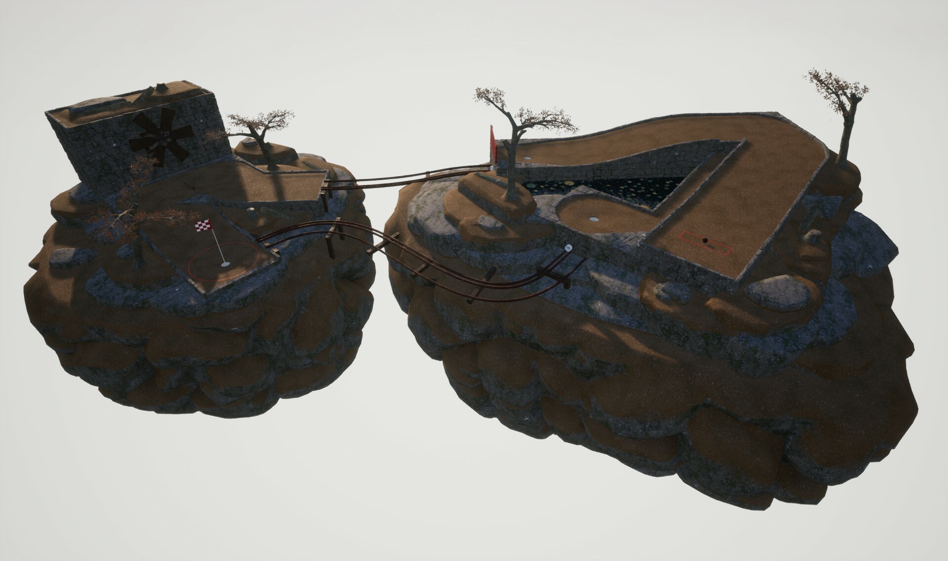 Golfing in Aether stands out from other minigolf games in that it doesn’t revolve around fixed courses. Each time you play a new course, it’s assembled from the pool of 80 currently available levels. This different approach offers increased replayability, ensuring that each playthrough is slightly different.