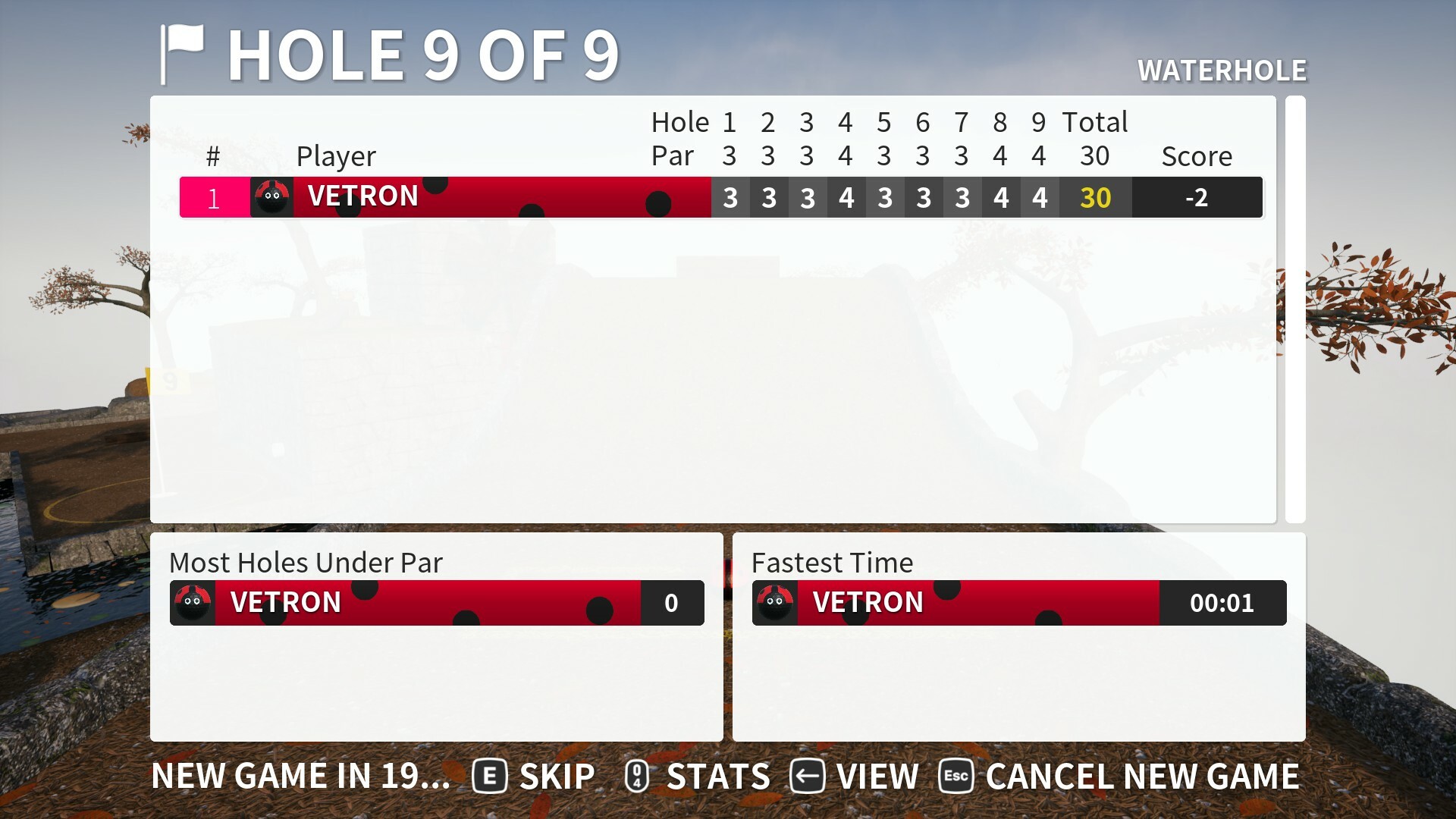 Added new stat for ‘fewest strokes’ during race mode to replace previous strokes stat. In this game mode as strokes don’t matter towards score an uncapped strokes will be shown without par factored in.