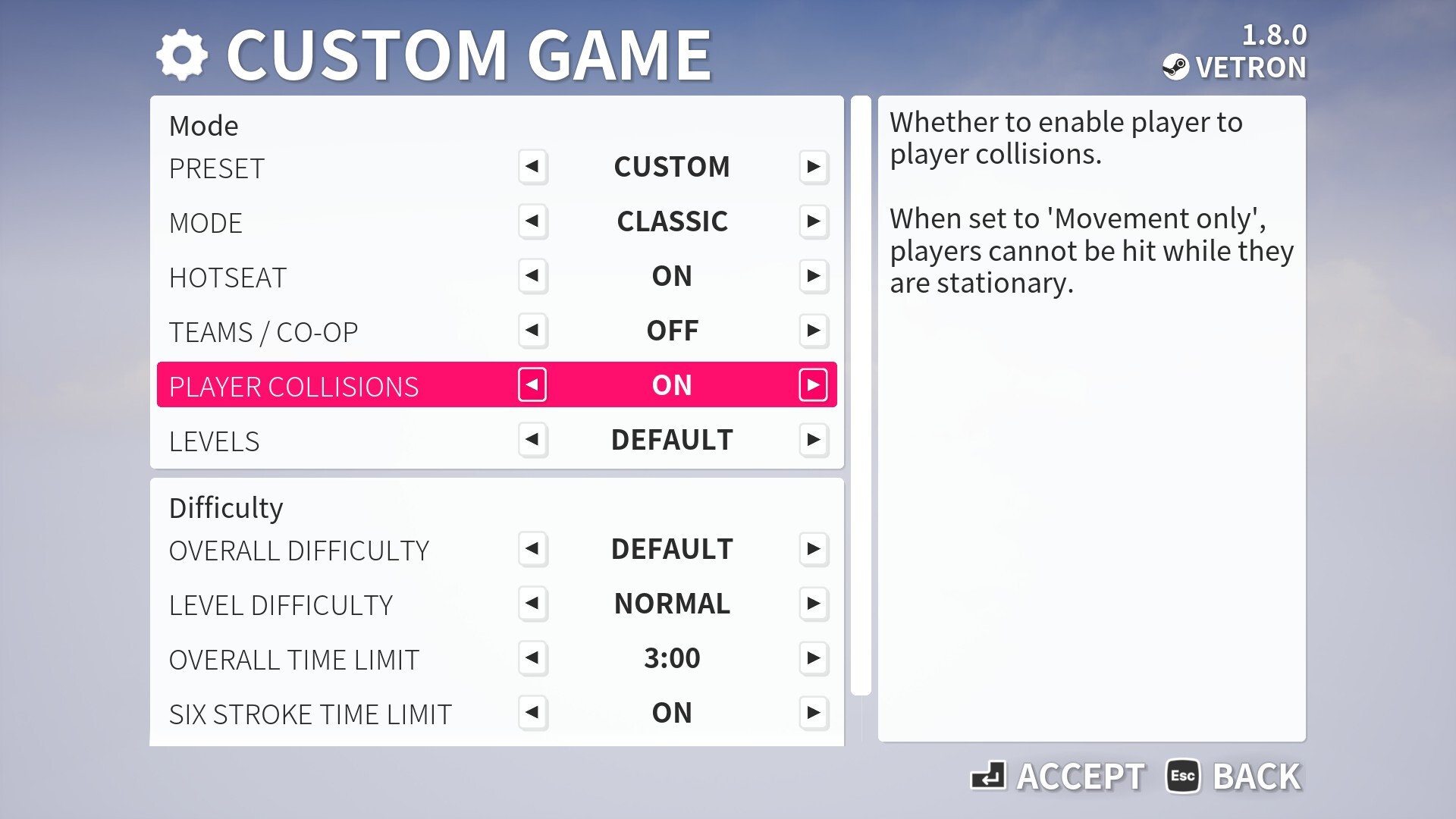 Improved Player collisions and options