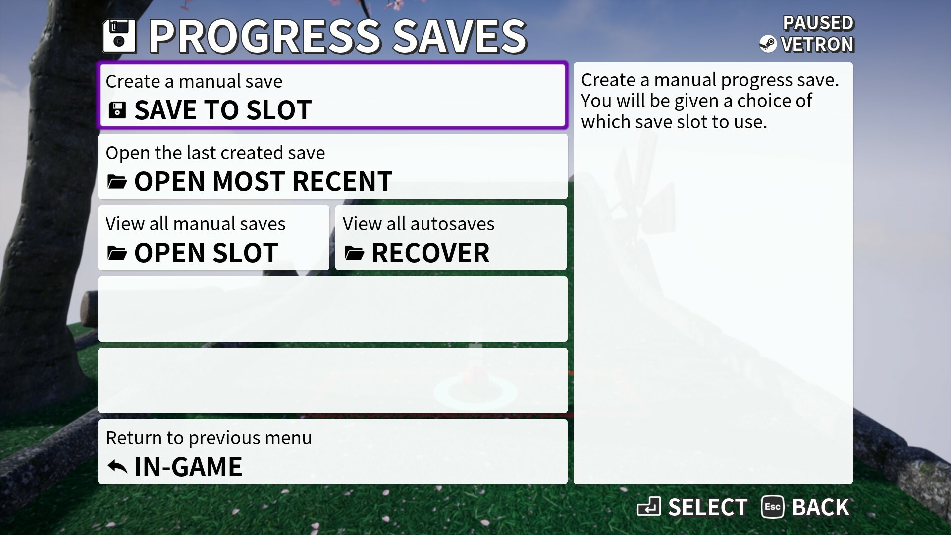 Fixed a navigation menu in progress saves menu.