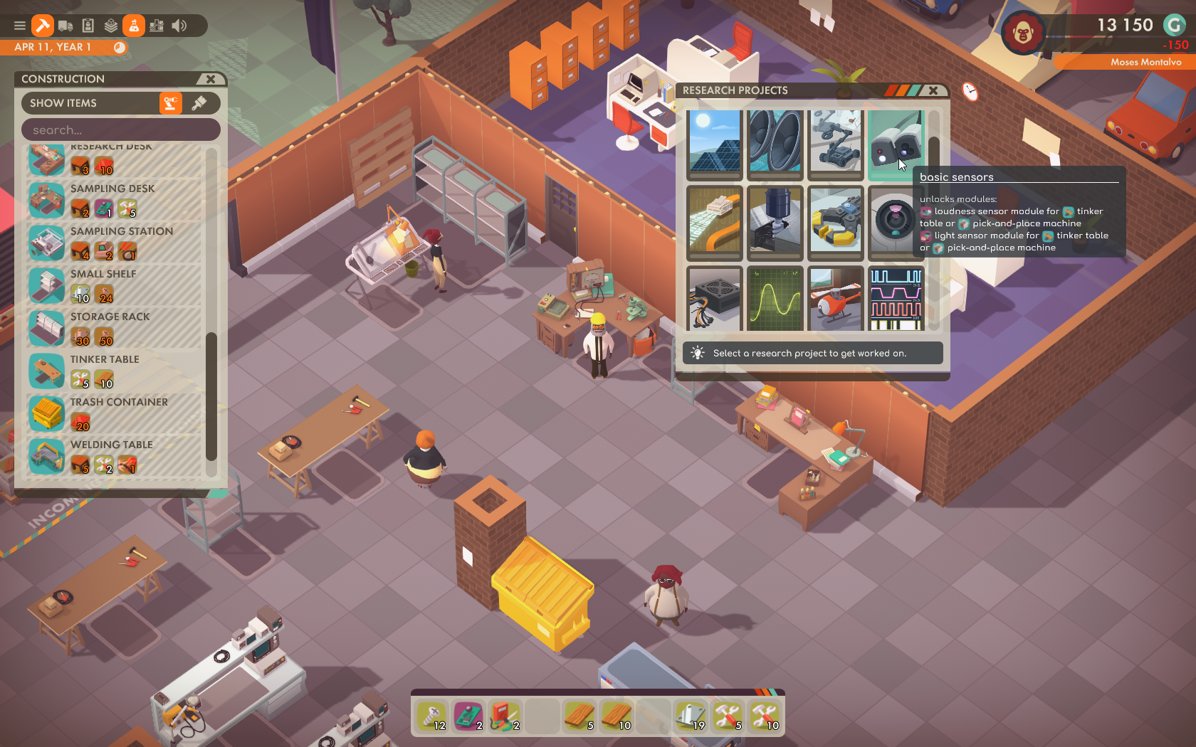 The research system in Good Company will let you unlock various technologies you need in order to upgrade workplaces and machines, which in turn let you build increasingly complex products. Research has its costs of course. You will have to convert materials or modules into science points first before you can unlock new areas.