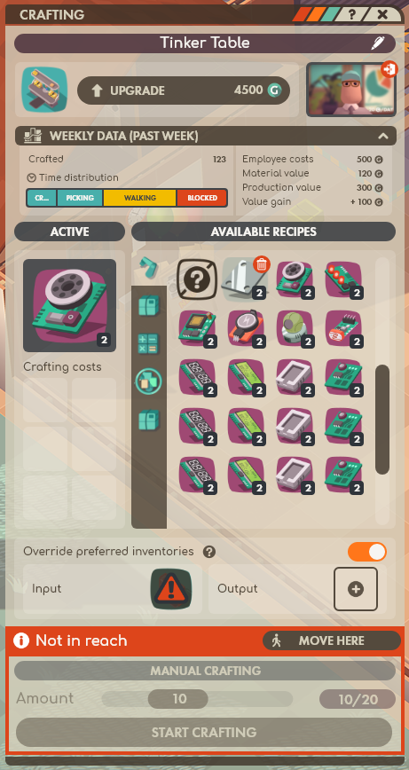 Important! Automated logistics won’t properly handle the transfer between the conveyor system and other parts of the production yet. We kindly ask that you bear with us and do this manually until the next big patch.
