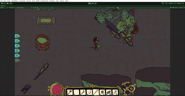 This character was a challenge for us in terms of Spine-Unity integration, fake 3d look and some conditional attack animations using inverse kinematics. But it was fun to develop and hopefully it will be a fun challenge to beat him in the game.