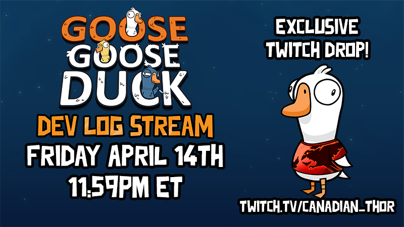 Join Chris and Dom Friday April 14 on Twitch as they discuss Goose Goose Duck Updates including more details about the upcoming map Bloodhaven! Followed by Q&A and Giveaways!
