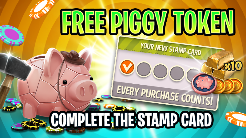 Get a FREE PIGGY TOKEN + 10 Gold Bars 🐷🎉 when you start collecting stamps by making any in-game purchase RIGHT NOW!