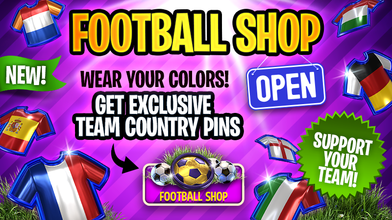 π Win one of the 24 TEAM PINS, each representing a European country! Get a NEW TEAM PIN every time you spin a TEAMS SPIN! β½ Start spinning now to build your exclusive football pin collection! β¨ We guarantee no duplicates! Once you collect all 24 team pins, you'll get a Super Spin for each additional Teams Spin.