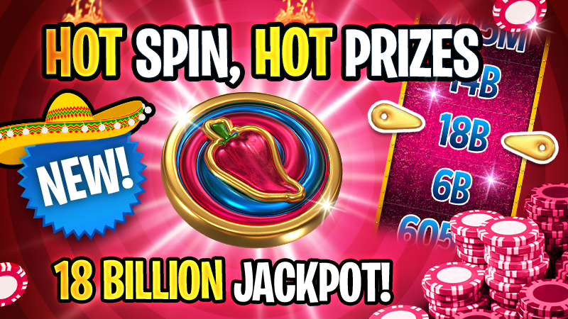 Introducing the all-new fiery Hot Spin! 🔥 Get ready to ignite your gameplay with sizzling Hot Spins, packed with super tasty prizes and an explosive 18 BILLION Chips JACKPOT! 💰