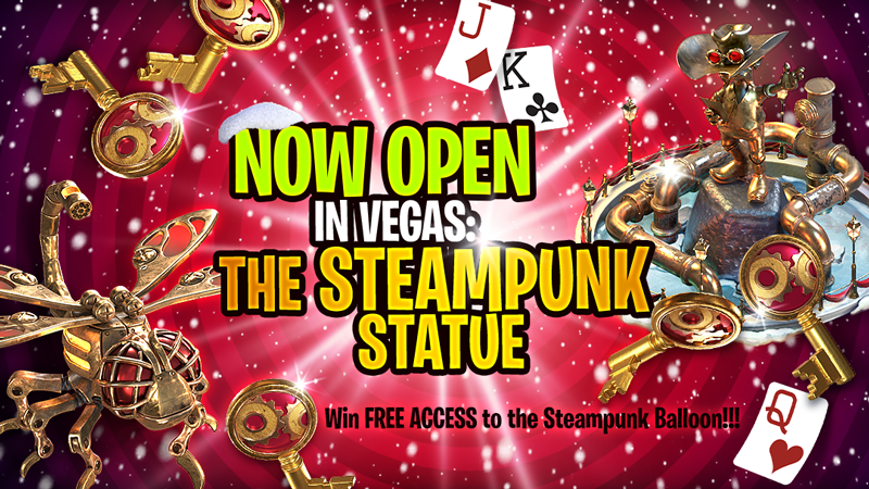 Prepare your Silver Steampunk Entry Keys!⚙️🗝️ The Steampunk Statue is now OPEN!🔗🔩 Wear down your opponents and get incredible jackpots of up to $2B chips!💰💰 Play TODAY in the Steampunk Statue and start collecting as many FREE Balloon Entry Keys as possible!🎈🗝️