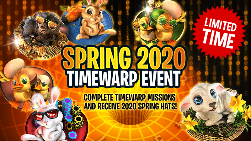π Let's hop back in time to a time when flowers bloomed and grass was green!πΌπ₯ππ₯ The Spring 2020 Timewarp event has arrived! Enjoy the warm weather until January 7th at 7 AM UTC/GMT! Walk through the flowery Spring 2020 Balloon saloons, and complete the missions to win the most adorable Spring hats!ππ°π