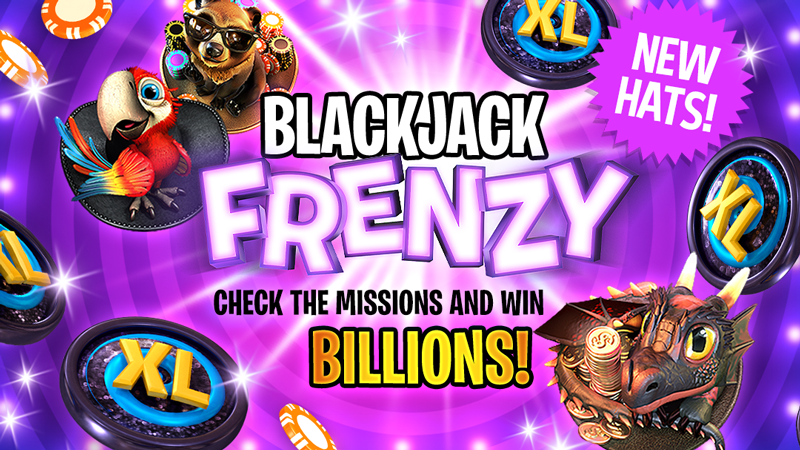 Blackjack Frenzy is back with a new and easier to find look!ππ Follow the purple βοΈ signs! You have until next Wednesday to complete the NEW missions and win amazing prizes such as Hats, Sapphire Tickets, Diamond Entry Keys, Multi and Black XL Spin tokens and much more!ποΈποΈππ°